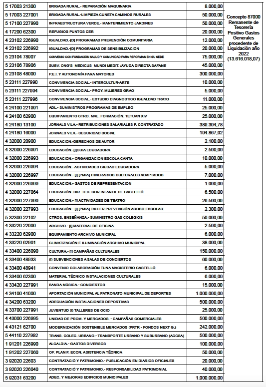 Este documento da de baja partidas por valor de 376.279 euros destinadas a la adquisición de material técnico y de seguridad, material de movilidad, vehículos de extinción de incendios, proyectos de extinción de incendios, plan de accesibilidad, iluminación led del alumbrado público, Pla Castelló Verd y proyectos de ciberseguridad.