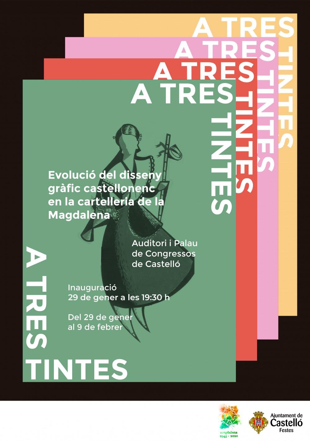 El título 'A tres tintes' hace referencia a uno de los requisitos que figuraban en las bases del concurso de carteles del año 1945, punto de arranque de esta convocatoria que se ha celebrado de forma ininterrumpida durante 75 años. Según ha explicado la comisaria de la exposición, Patricia Mir, "agrupados, no por cronología, sino por temática, estilismo, tipografía, lenguajes plásticos, colorido o revolución digital, la exposición quiere poner en valor la aportación artística de estos creadores, cuyo legado forma parte ya del patrimonio de todos los castellonenses". Hay que tener en cuenta que el corpus principal de las obras son los originales, algunos de ellos firmados por artistas tan conocidos como Tasio, Rafael Guallart, Alain Campos o Lorenzo Ramírez.