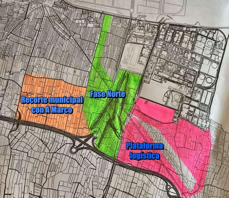 Según las mismas fuentes, lo primero que hizo el ayuntamiento fue recortar 400.000 metros de suelo industrial de aquella plataforma logística, y luego dividir la zona en dos partes.