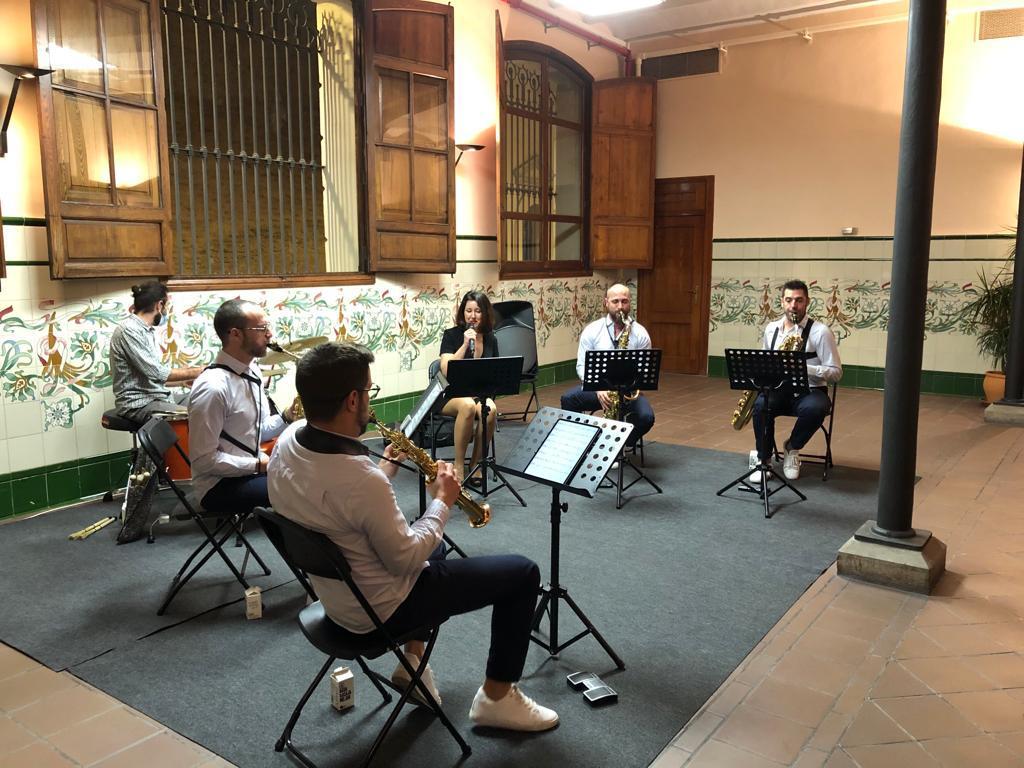 La Casa dels Caragols, sede de la Delegación del Consell en Castellón, ha recibido esta tarde al cuarteto de jazz, Púrpura Pansa, dentro del programa de actividades, que ofrece Presidencia de la Generalitat, 'El Nadal és valencià'. El grupo valenciano ha actuado en el patio de la Casa dels Caragols frente a un grupo de 50 personas, cumpliendo con todas las medidas de seguridad e higiene frente a la Covid-19.