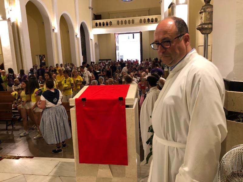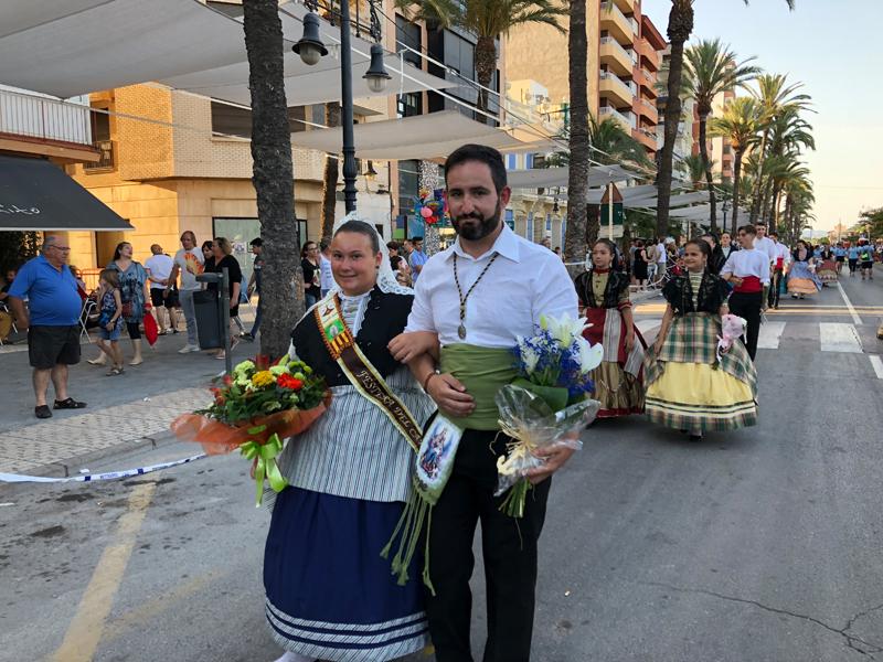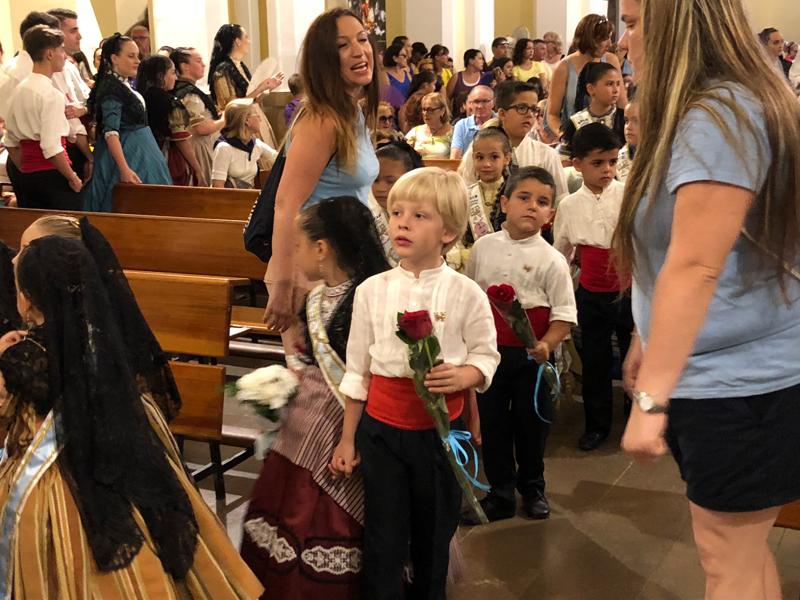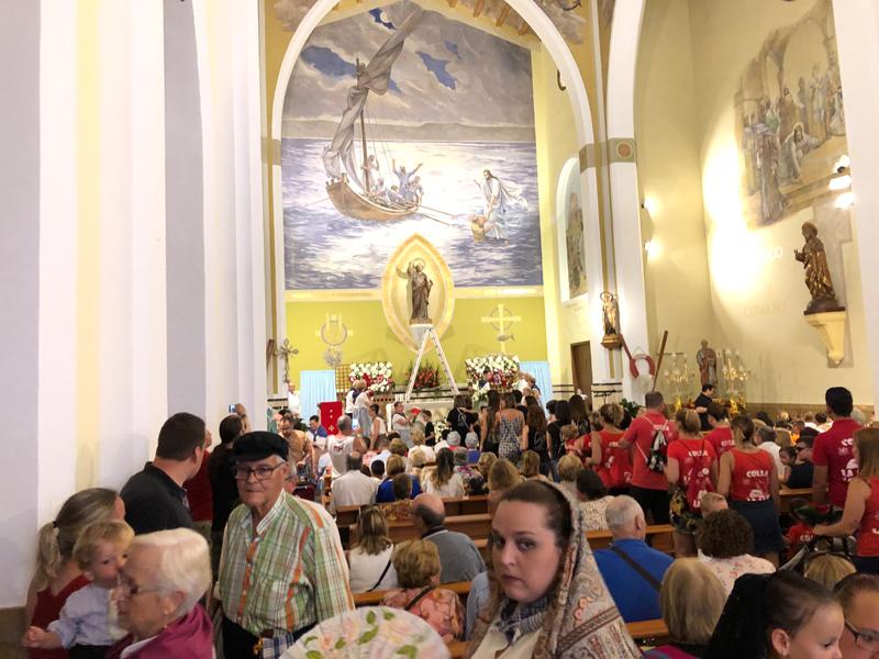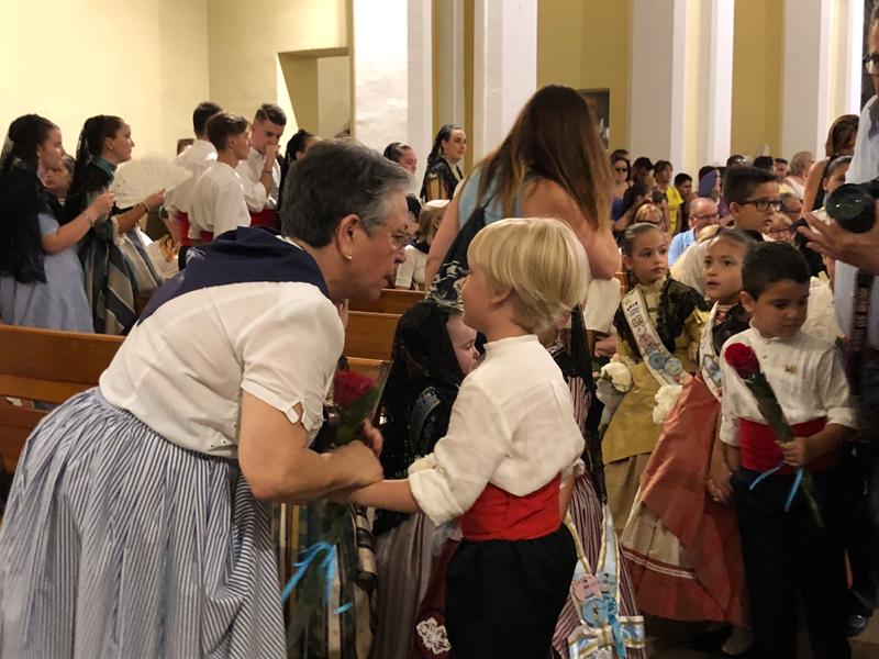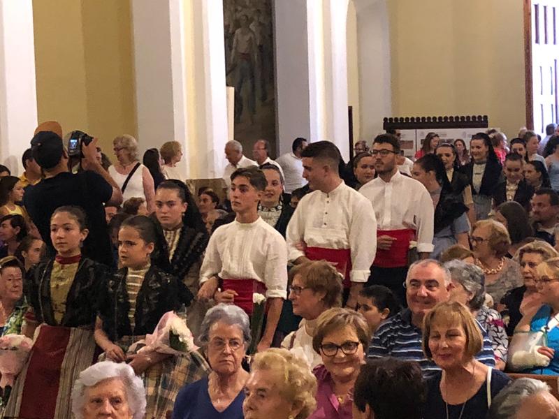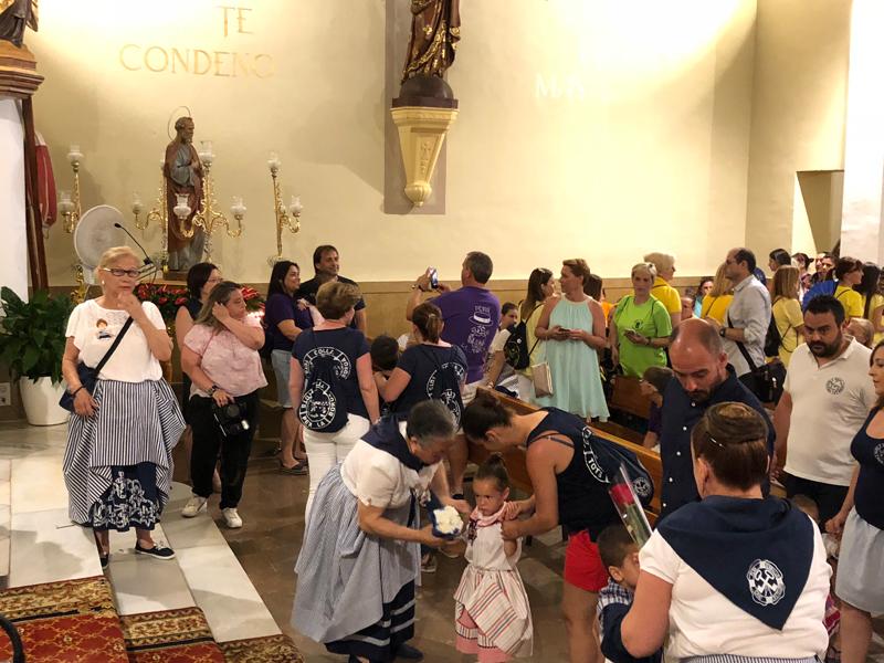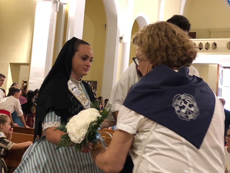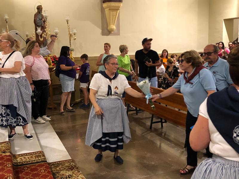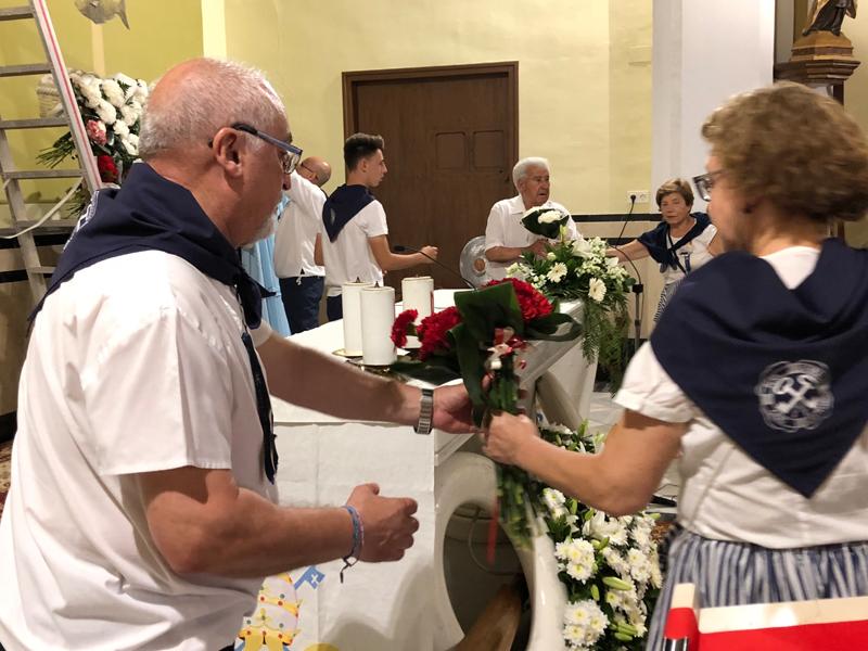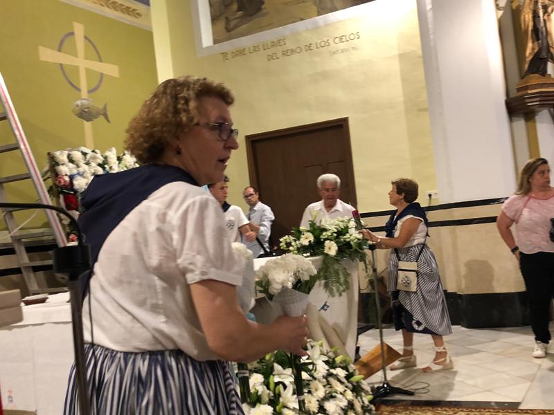 Participaron todos, la cofradía de Pescadores, las peñas, los festeros, la Comisión de Fiestas y los marineros y sus familias que portaron con devoción los ramos de flores que ilustraron el tapiz compuesto tras el altar mayor.