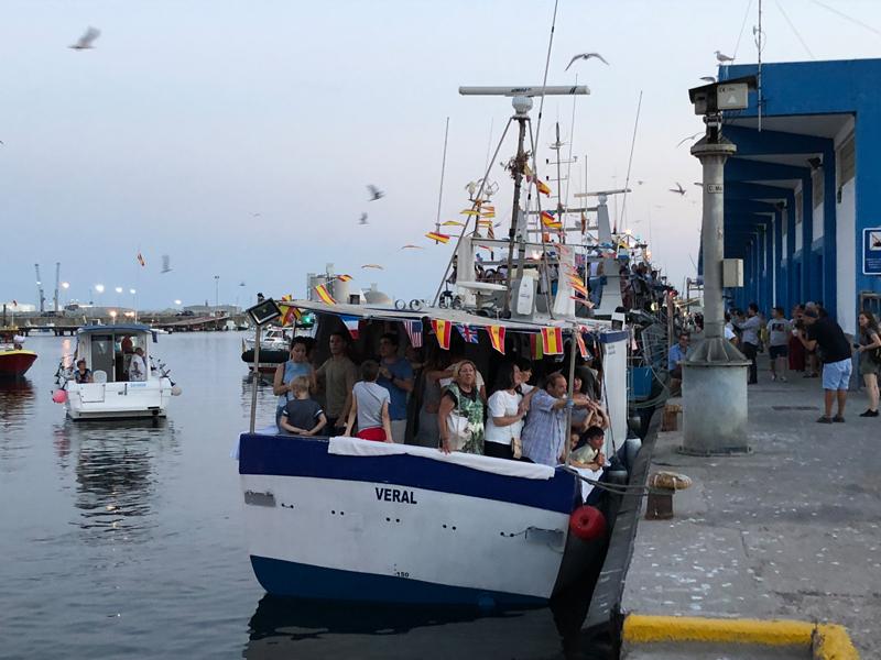 En el Puerto, frente a la Cofradía ya esperaban las barcas engalanadas y todos los barcos de pesca y de recreo, para disfrutar de la procesión marítima, que navegó y recorrió por mar las aguas de Castellón, mientras se disparaba un cohete de fuegos artificiales.
