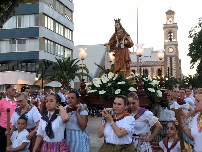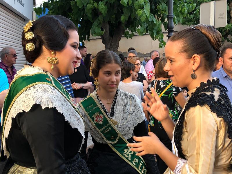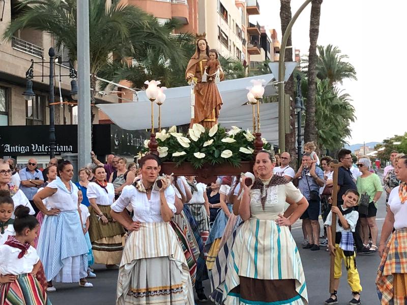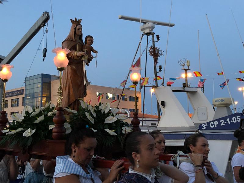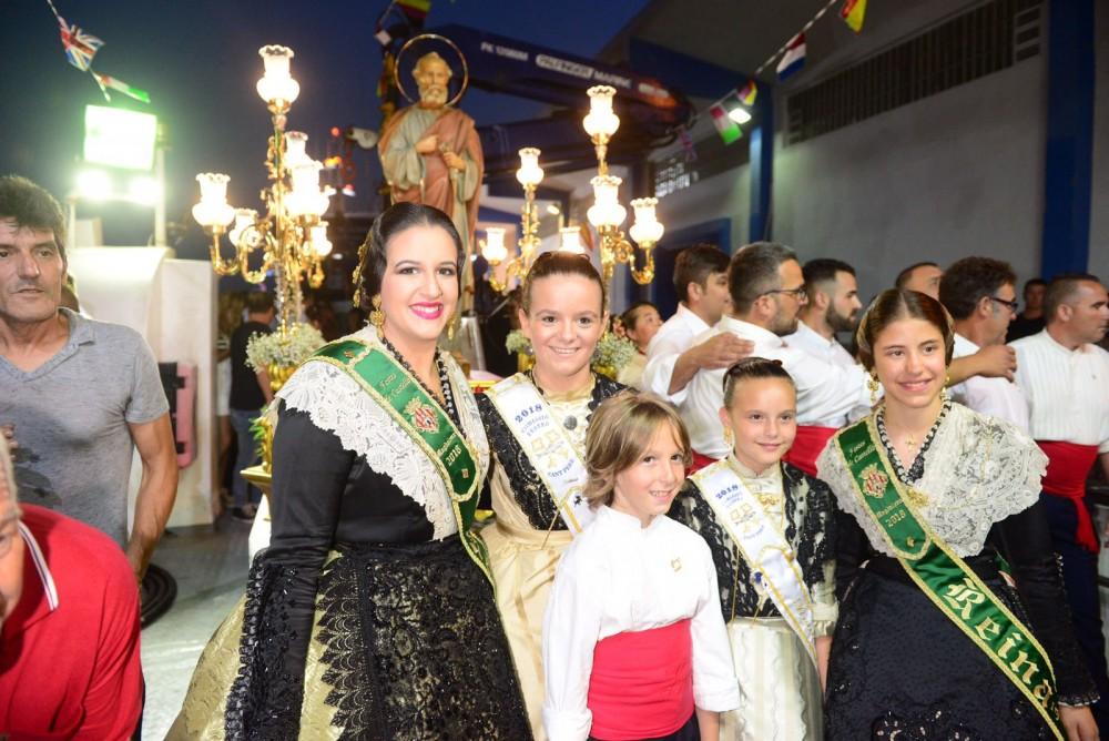 Posteriormente, en la calle formaron las comisiones. Las reinas de las Fiestas de castellón se sumaron al evento y acompañaron a las reinas del Grao; la Corporación Municipal con su alcaldesa al frente, integraron la comitiva que esperaba en la puerta de la iglesia, par acompañar a la Virgen del Carmen, Patrona de los marineros y a Sant Pere, patrón de Castelló.