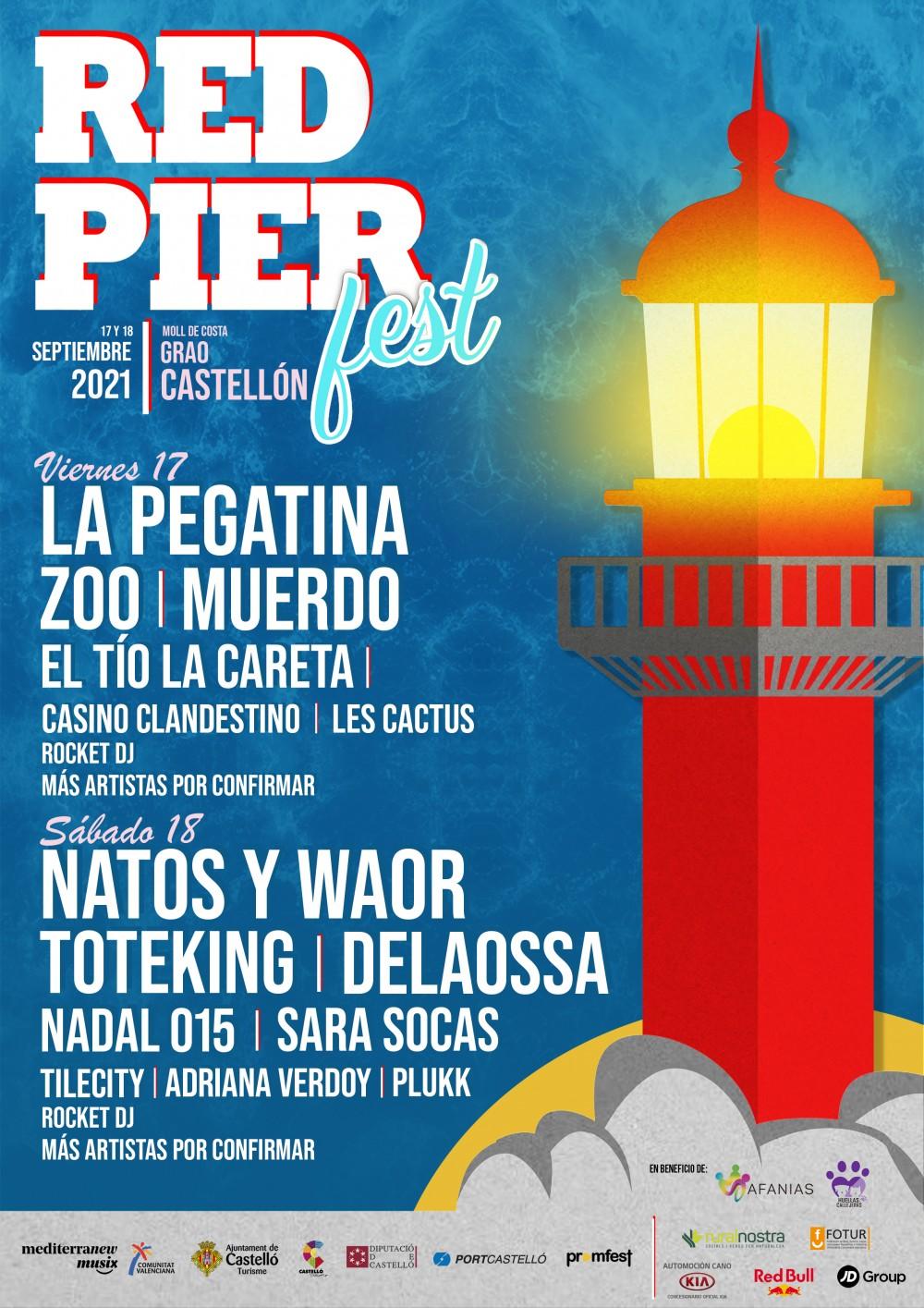 El Festival Red Pier Fest celebrará su V edición los días 17 y 18 de septiembre. Tras su cancelación en 2020 el festival del Grao de Castelló vuelve con uno de los carteles más potentes y mediáticos del panorama musical con artistas como La Pegatina, Natos y Waor, Zoo, Toteking, El Tio La Careta, Delaossa... contando con una de las mayores producciones a nivel nacional.