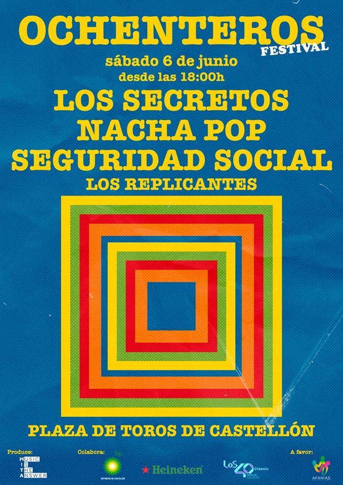 Pero unos meses antes, la capital de La Plana acogerá el festival Ochenteros con las actuaciones de Los Secretos, Nacha Pop, Seguridad Social, además de los locales Replicantes. La actuación será en la Plaza de Toros de Castelló el sábado, 6 de junio, desde las 18 horas.