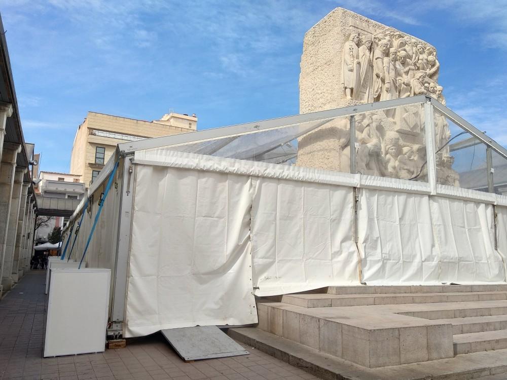 Además, en la plaza María Agustina, frente a la Subdelegación del Gobierno en Castellón, también han comenzado hoy los trabajos de montaje de una carpa en la que estará la comisión de la Gaiata 10, El Toll.