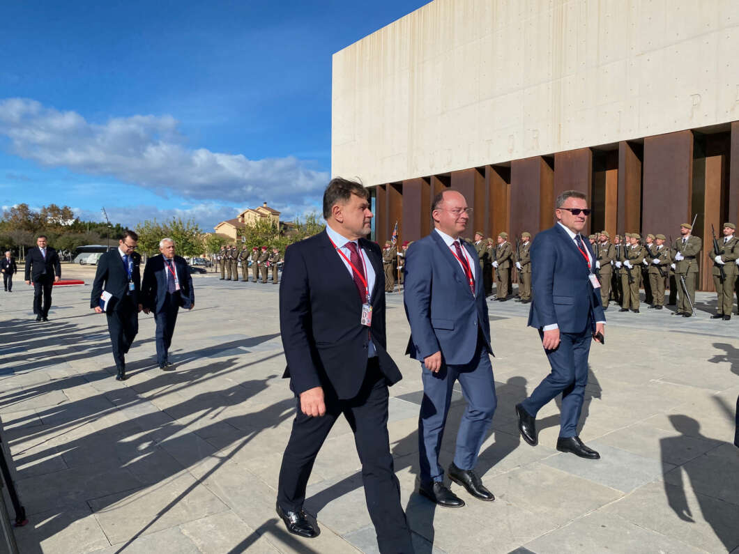 El Regimiento y la Unidad de Música del Cuartel General terrestre de alta disponibilidad de la OTAN de Bétera ha estado presente para recibir a los representantes de ambos gobiernos y han formado en las puertas del Auditorio donde han interpretado el himno nacional de España.