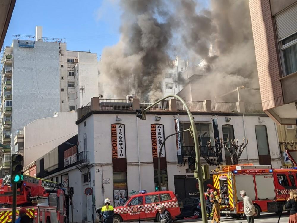 Los bomberos participan esta mañana en la extinción de un incendio en una nave situada en la avenida Hermanos Bou con la calle Marques de la Ensenada de Castelló, que anteriormente ocupaba la discoteca Oxo. La enorme columna de humo generada en el mismo se podía ver desde distintas partes de la ciudad. Hasta el lugar de los hechos también han acudido miembros de la policía local que han informado que sobre las 13.40 horas se ha procedido a evacuar el supermercado colindante al local que se ha incendiado, mientras los bomberos continuan con las labores de extinción.