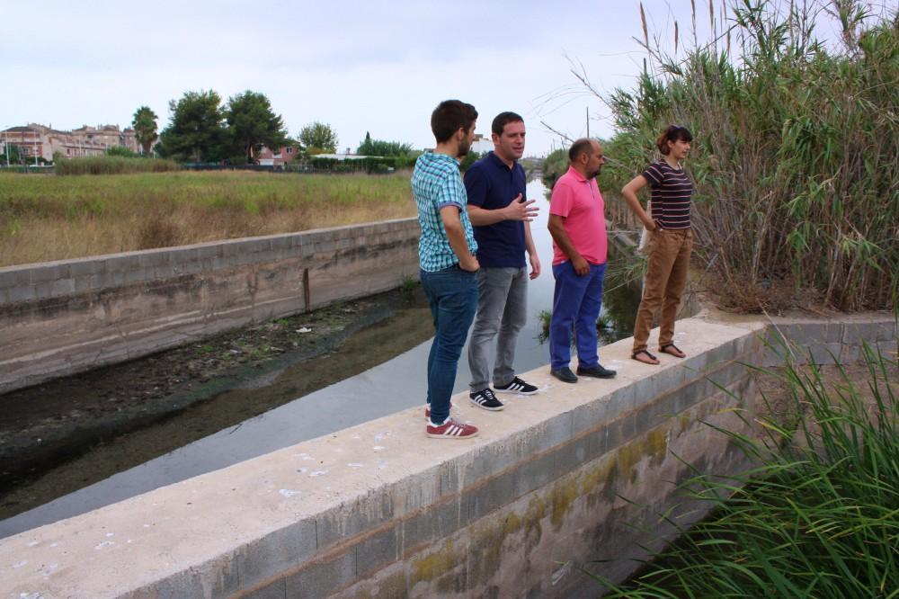 El regidor de Reciclatge i Gestió Integral de Residus de l'Ajuntament de Castelló, Ignasi Garcia, i el regidor de Transició Ecològica, Fernando Navarro, han visitat la séquia En Trilles per tal de conéixer les labors de neteja que s’estan portant a terme.
