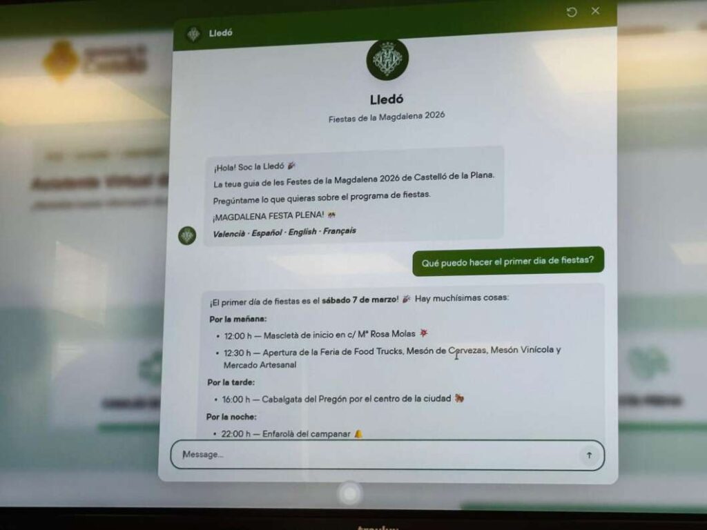 El Ayuntamiento de Castelló ha puesto en marcha este viernes ‘Lledó’, un nuevo asistente virtual que permitirá consultar de forma rápida y sencilla cualquier información relacionada con el programa de las fiestas de la Magdalena.