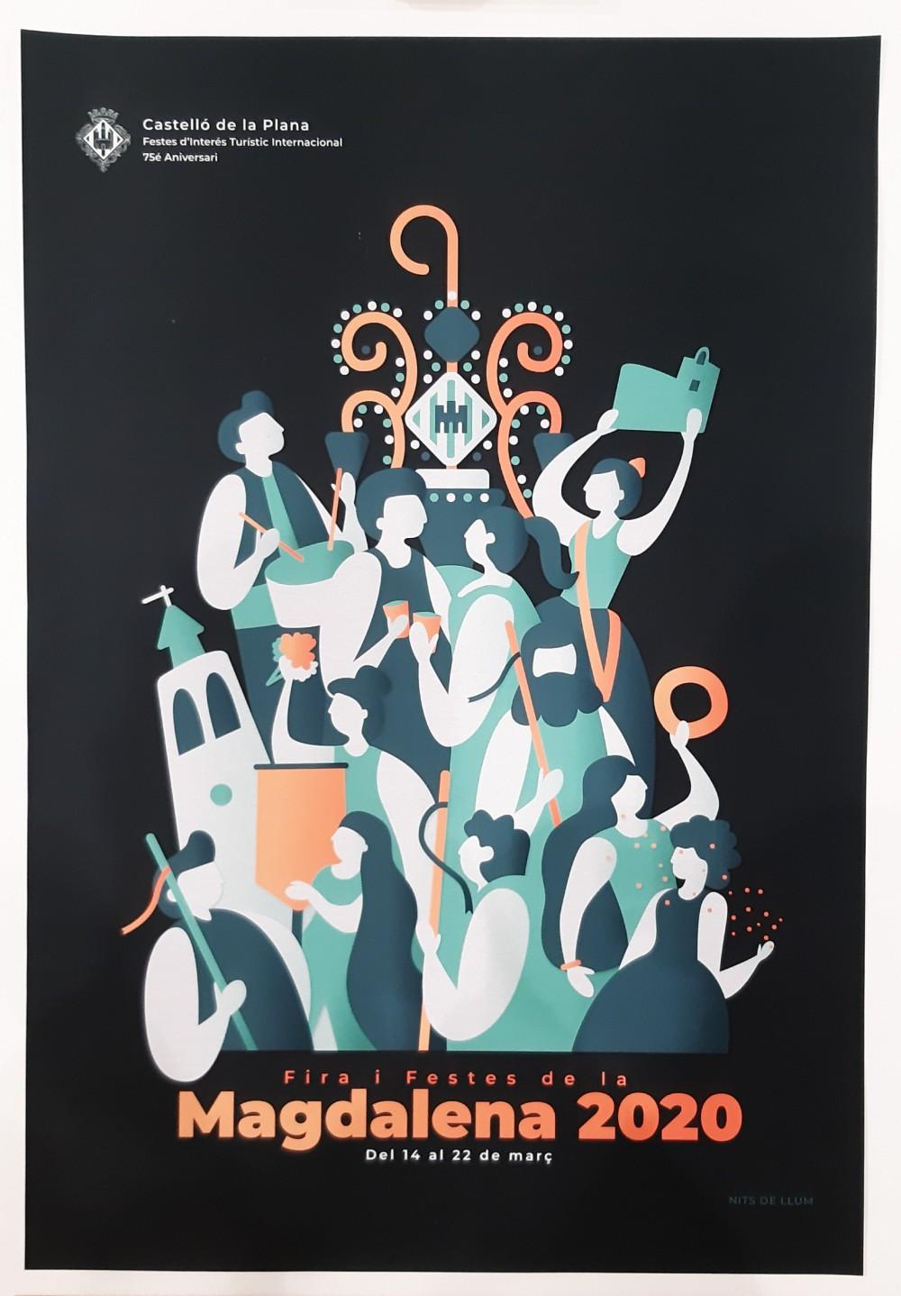 El cartel con el lema 'Nits de llum' es el ganador del concurso convocado por el Patronato Municipal de Fiestas de Castelló para anunciar la Magdalena 2020. El autor de la obra ganadora es Endika Gómez de Balugera que se llevará el premio dotado con 3.000 euros.