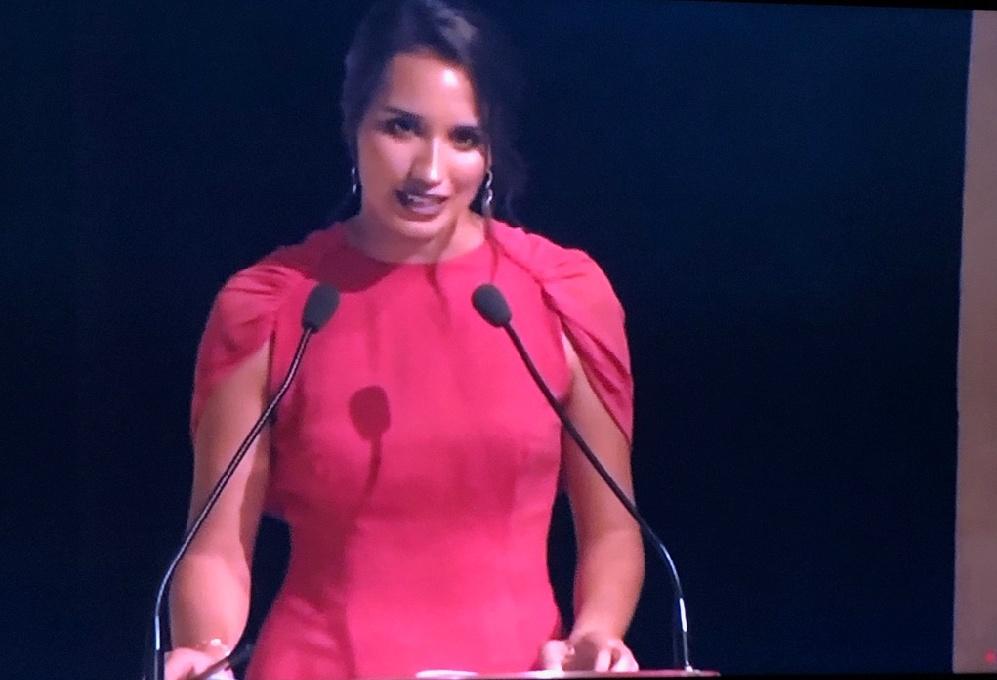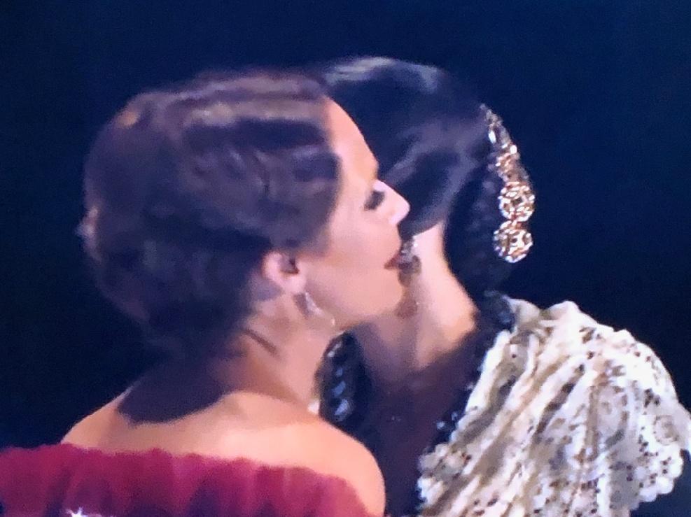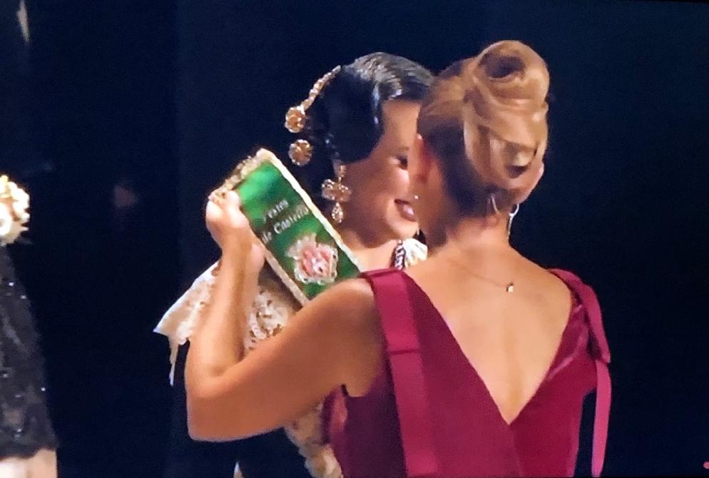 A continuación, la alcaldesa de Castelló, Amparo Marco y la presidenta de la Junta de Festes, Noelia Selma, ambas vestidas de rojo, han sido las encargadas de subir al escenario para poner las bandas y entregar un ramo de flores a cada una de las 19 madrinas de las gaiatas que forman los sectores de Castelló que han ido ocupando sus asientos en el escenario.