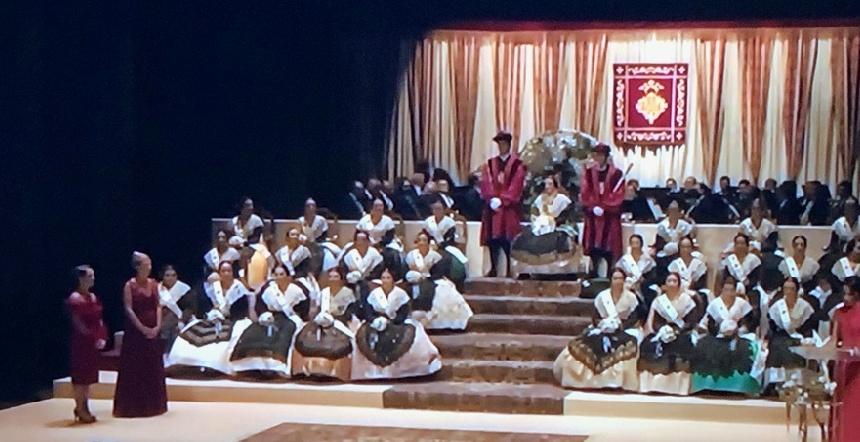 Tras la presentación del acto por parte la que fuera reina de las fiestas en 2017, Estefanía Climent, ha sido el turno del secretario, José Almela, de la lectura del acta por la que se nombra a la reina de las fiestas y a su corte de honor.
