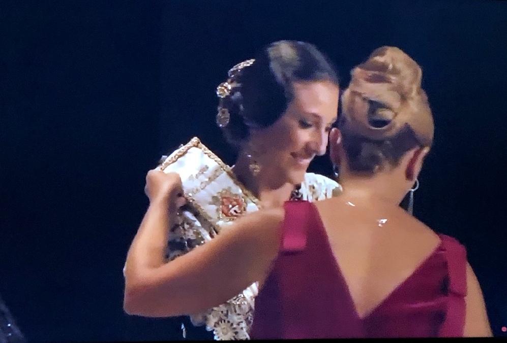 Y puestos en pie ya solo quedaba por recibir a Carmen Molina Ramos, reina de las fiestas de Castelló 2020 que ha desfilado hasta el escenario acompañada por los aplausos de los presentes. Con una emoción contenida en su rostro, Carmen ha recibido la banda verde, que ha llevado hasta el escenario Higinio Mateu, que la corona como la máxima representante de las fiestas de Castelló y la imagen de la ciudad de manos de la alcaldesa de la ciudad, Amparo Marco, acompañada por la Marxa de la Ciutat, interpretada por la Banda de la Ciudad.