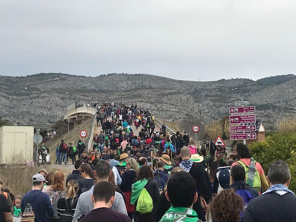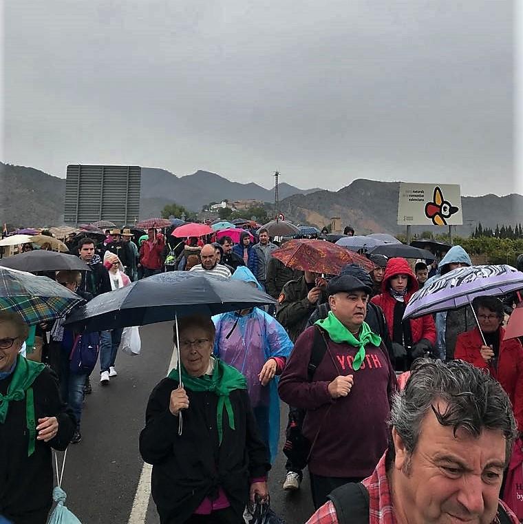 Una vez provistos de la seña de la romería, los centenares de personas han llenada la plaza Mayor para ver a la comitiva religiosa y la oficial, presidida esta última por la alcaldesa de Castellón, Amparo Marco, y el president de la Generalitat Valenciana, Ximo Puig, a los que han acompañado, los miembros de la corporación municipal. Todos juntos han entrado a la Concatedral de Santa María para asistir a la Eucaristía que se ha celebrado y tras la que ha partido ya oficialmente la romería hasta la ermita de la Magdalena a las 9 horas, como manda la tradición.Miles de personas han realizado el camino tras la comitiva, en una mañana que aunque ha sido con temperaturas algo frescas, ha respetado la lluvia al principio.