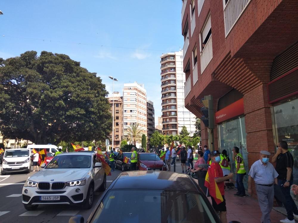 Decenas de personas, en sus vehículos particulares --un total de 497 según los datos de la Policía Local--, han participado esta mañana en la 'Caravana por España y su libertad' convocada por VOX para mostrar su rechazo a la gestión que está realizando el Gobierno de España con la crisis provocada por el coronavirus. La manifestación en coche ha partido sobre las 12 horas desde la plaza María Agustina para terminar su recorrido sobre las 12.30 horas al final de la calle Columbretes.