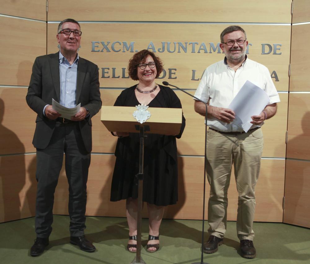 La vicealcaldessa de l'Ajuntament de Castelló i regidora d'Igualtat, Ali Brancal, i el regidor de Gestió Municipal, Antonio Lorenzo, al costat del secretari autonòmic de Justícia, Administració Pública, Reformes Democràtiques i Llibertats Públiques, Ferran Puchades, han presentat hui l'adhesió del consistori castellonenc al conveni marc establit entre la Conselleria de Justícia i la Federació Valenciana de Municipis i Provincies (FVMP) per a impulsar la mobilitat de les empleades públiques entre administracions per raó de violència de gènere.