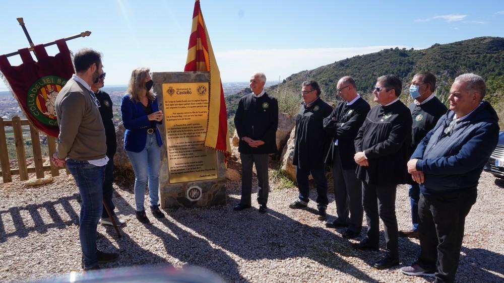 La alcaldesa de Castelló, Amparo Marco, y el concejal de Fiestas, Omar Braina, han participado hoy en el acto de inauguración del monolito conmemorativo en honor a Tombatossals instalado en el mirador del Camí de Borriol a la Costa.
