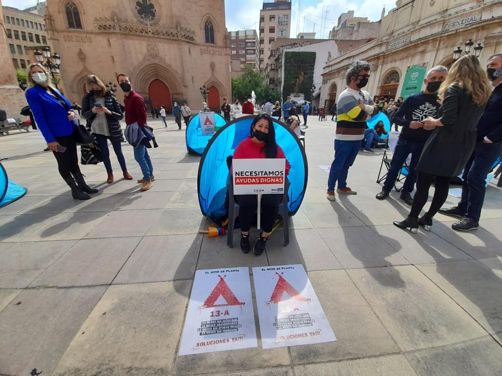 Alrededor de un centenar de representantes del sector del ocio nocturno han protestado en la acampada que se ha realizado esta mañana en la plaza Mayor de Castelló. Esta reivindicación según ha explicado Sánchez, “es un movimiento que nació el 13 de abril porque llevamos 13 meses abandonados, sin actividad, sin ingresos y sin ayudas reales de las administraciones”. Y por ello reclaman que “si por emergencia sanitaria tienen que estar cerrados, no hay problema, pero tiene que haber unas compensaciones económicas para que las empresas puedan sobrevivir”.