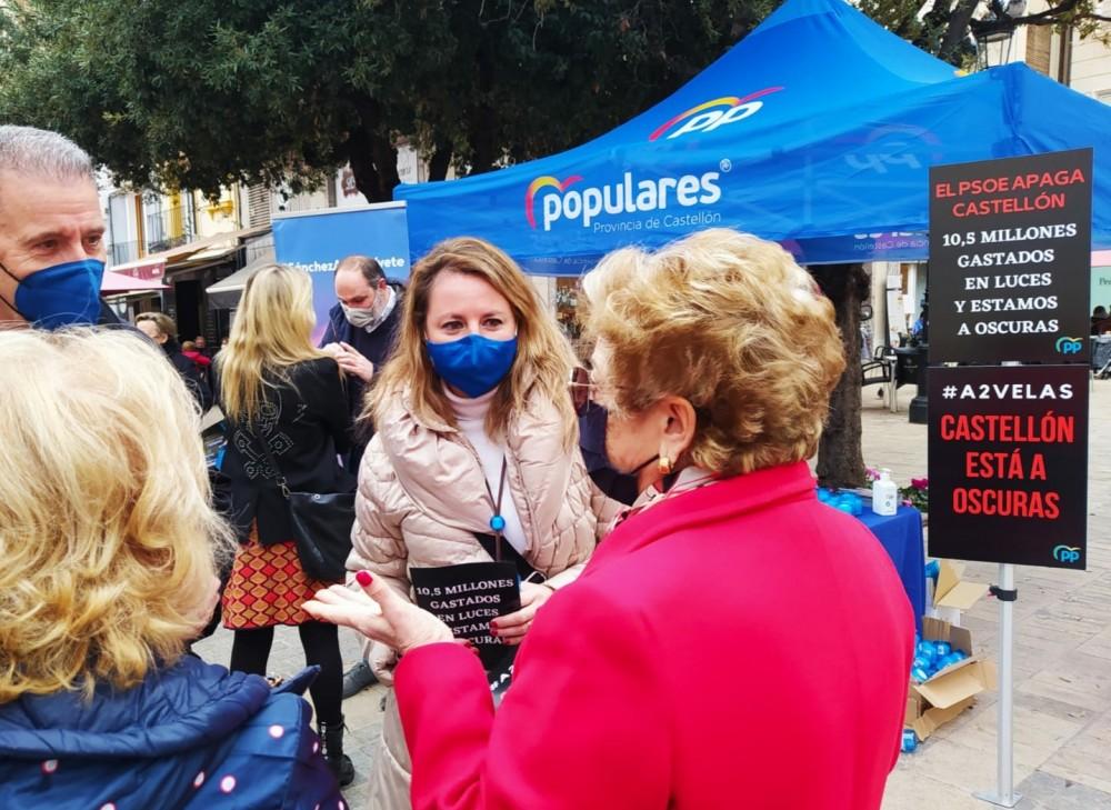 "Los castellonenses estamos a dos velas", así de contundente se muestra la presidenta del Partido Popular de la ciudad de Castellón, Begoña Carrasco. "El PSOE de Pedro Sánchez y Amparo Marco cobran elevados impuestos, mientras los precios de la luz, los combustibles, la bombona de butano o la cesta de la compra no paran de subir, lo que hace que cada día sea más difícil llegar a fin de mes. Además, la alcaldesa se ha gastado 10,5 millones de euros en el cambio de luz en las calles y Castellón está a oscuras", explica.
