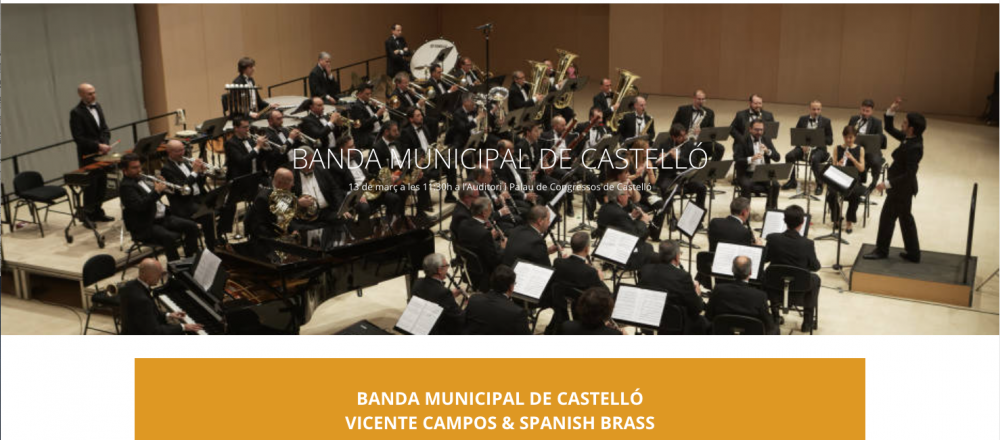 La Banda Municipal de Castelló obrirà l'esdeveniment dirigida per Àngel Escutia, i amb Spanish Brass Luur Metalls i Vicente Campos com a solistes
