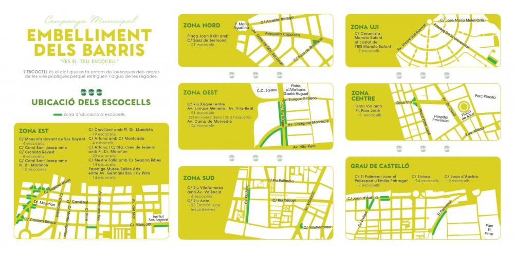 Els escocells són els buits de terra que queden entre la vorera i els arbres plantats en la mateixa i que tenen com a funció arreplegar l'aigua de pluja i facilitar el desenvolupament de l'arbrat en espais urbans. Amb aquesta campanya els castellonencs podran seleccionar l'escocell de la plaça o vorera de sota la seua casa o més pròxim per a poder cuidar-ho, plantar plantes aromàtiques, florals o altres espècies vegetals que permeten embellir el seu barri i l'arbrat de la ciutat.
