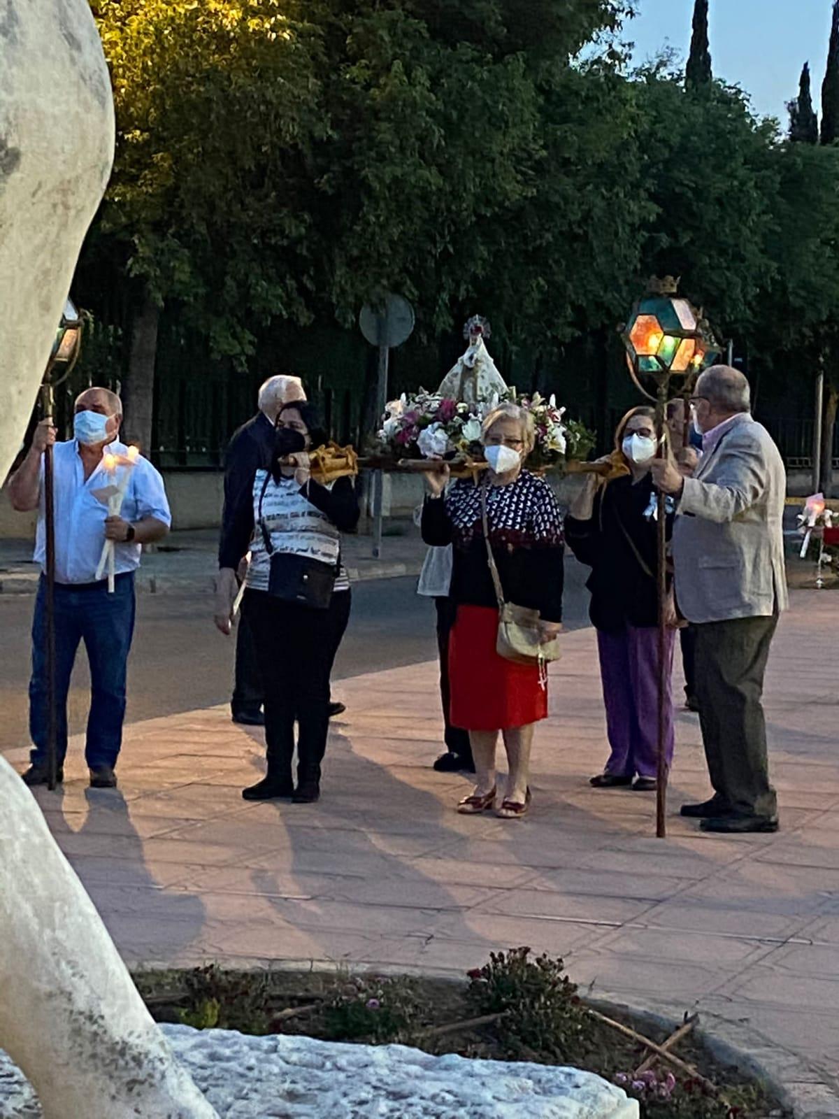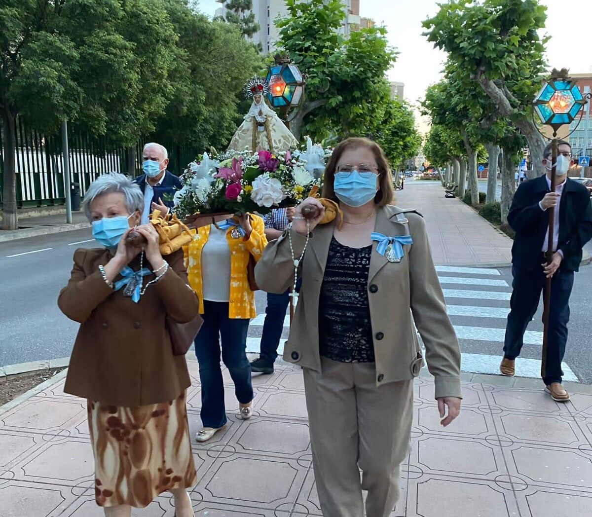 La Real Cofradía de la Virgen del Lledó de Castelló celebró este sábado por la noche el Rosario de las Antorchas, que será el primer acto público de Fe en la ciudad, tras el comienzo de la pandemia.