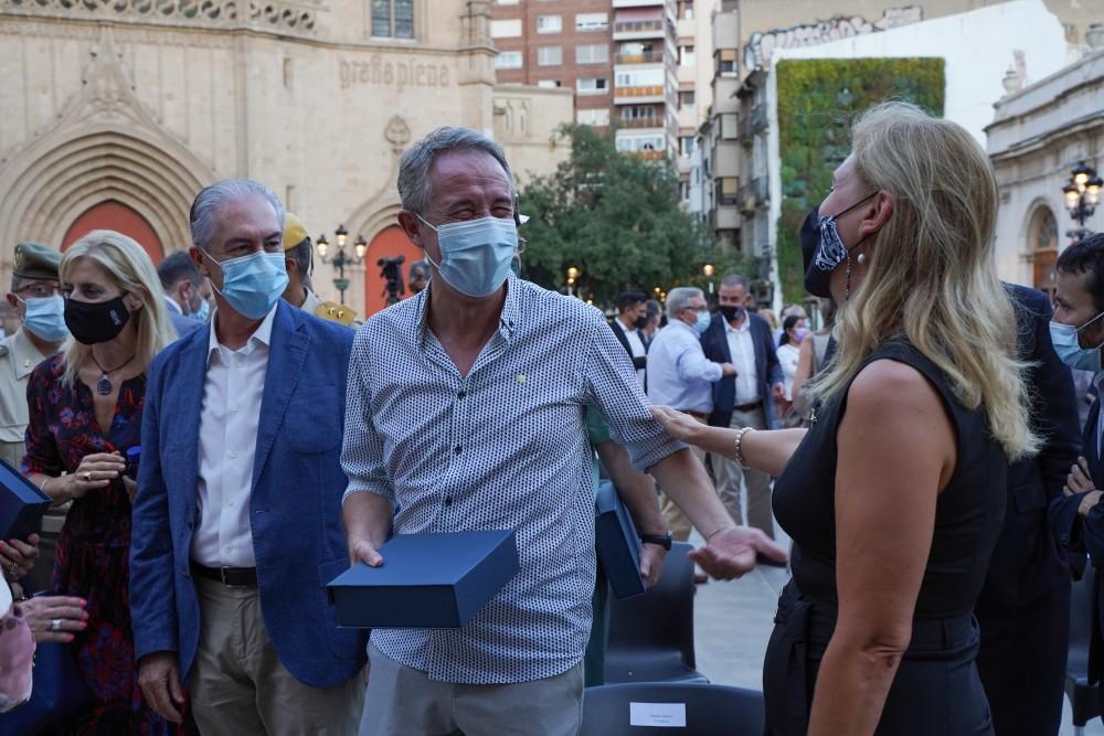 El acto, conducido por el periodista Alberto Suárez, ha dado inicio con un minuto de silencio en recuerdo a las víctimas y con los testimonios de un afectado por el coronavirus, Eladio Collado, y de la hija de un fallecido por la covid-19, Sara Nácher. Tras sus palabras, la alcaldesa y los portavoces de los grupos municipales, David Donate, Ignasi Garcia, Fernando Navarro, Begoña Carrasco, Alejandro Marín-Buck y Luciano Ferrer, han subido al escenario para iniciar el reconocimiento a los sectores, durante el que se han entregado más de 50 metopas con la siguiente leyenda: A totes les persones treballadores dels serveis essencials de Castelló. La ciutat es sent orgullosa de la vostra dedicació i esforç. Gràcies pel vostre treball durant la pandèmia.