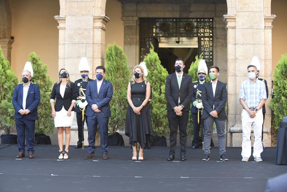 "Somos una ciudad que siempre ha hecho frente a las adversidades... Somos una ciudad satisfecha de su pasado, que afronta con determinación los rigores del presente y encara con ilusión los que vendrán en el futuro", ha continuado Marco en su lectura del manifiesto, para lanzar después un mensaje de prudencia: "Debemos ser conscientes de que el virus no ha desaparecido y la emergencia sanitaria continúa. Es vital seguir cumpliendo las indicaciones de las autoridades sanitarias. La consigna es clara: actuar con extremada prudencia y responsabilidad".
