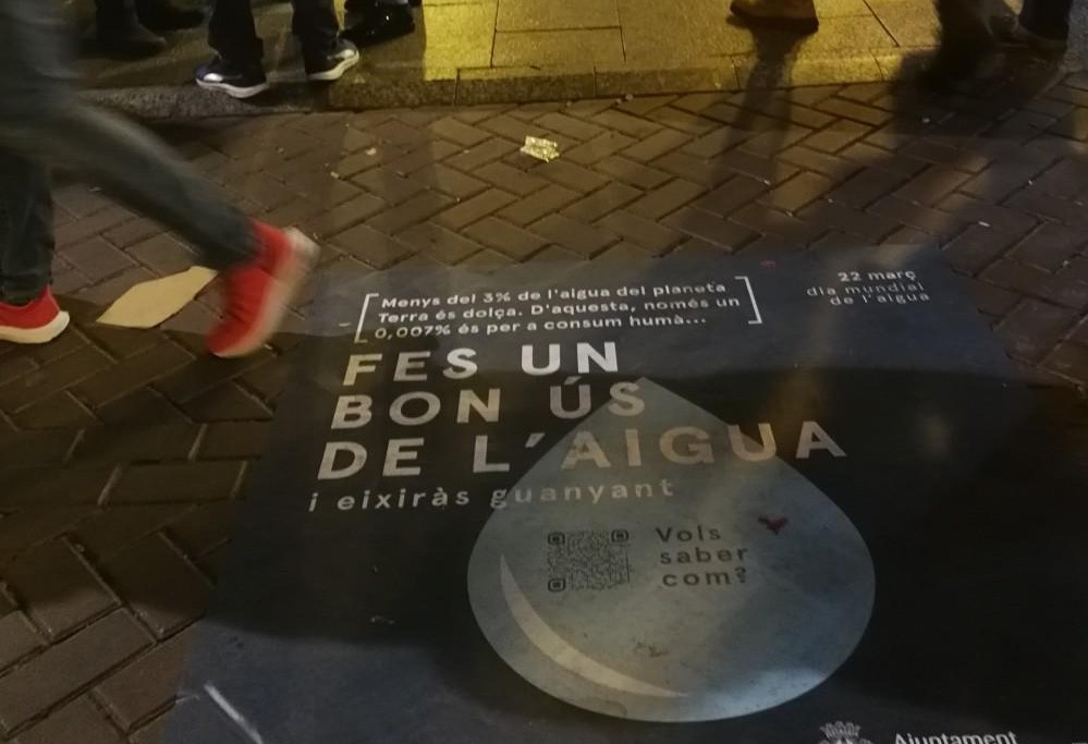 Adhesius de grans dimensions s'han distribuït en onze punts de la ciutat: la Plaça de la Peixaeteria, Carrer Major, Teatre Principal, Parc Ribalta, enfront de l'Església de la Sang, al costat de la Piscina Provincial, Caputxins, avinguda Rei Don Jaime, Tenència d’Alcaldia del Grau i Plaça del Mar del Grau. Diferents missatges que consciencien sota l'eslògan ‘Feix un bon ús de l'aigua i eixiràs guanyant’ pretenen atraure els i les castellonenques per a escanejar el codi QR que incorporen. A través del mòbil, el codi els redirigirà a un total de deu consells per a un consum eficient.