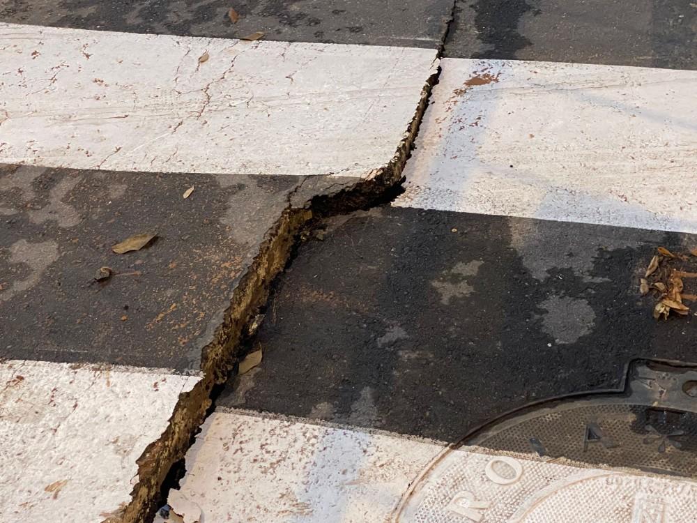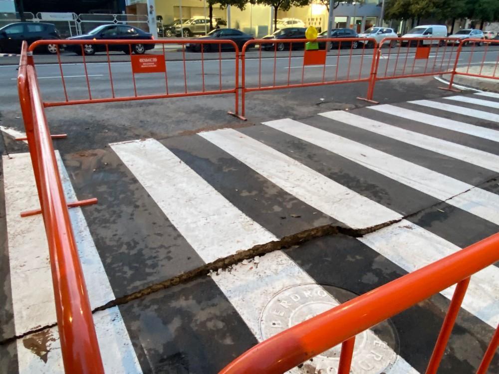 La fractura, que se produjo la tarde del domingo, provocó grandes grietas en la calzada