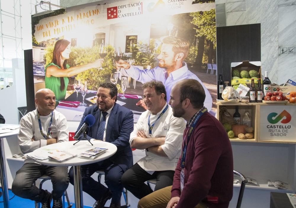 El stand de Castelló Ruta de Sabor ha sido punto de encuentro para los profesionales que han podido conocer la gastronomía provincial a través no sólo de la experiencia de referentes como Martín Berasategui o Raúl Resino, sino también a través de los productos expuestos y el material promocional y las pantallas audiovisuales.