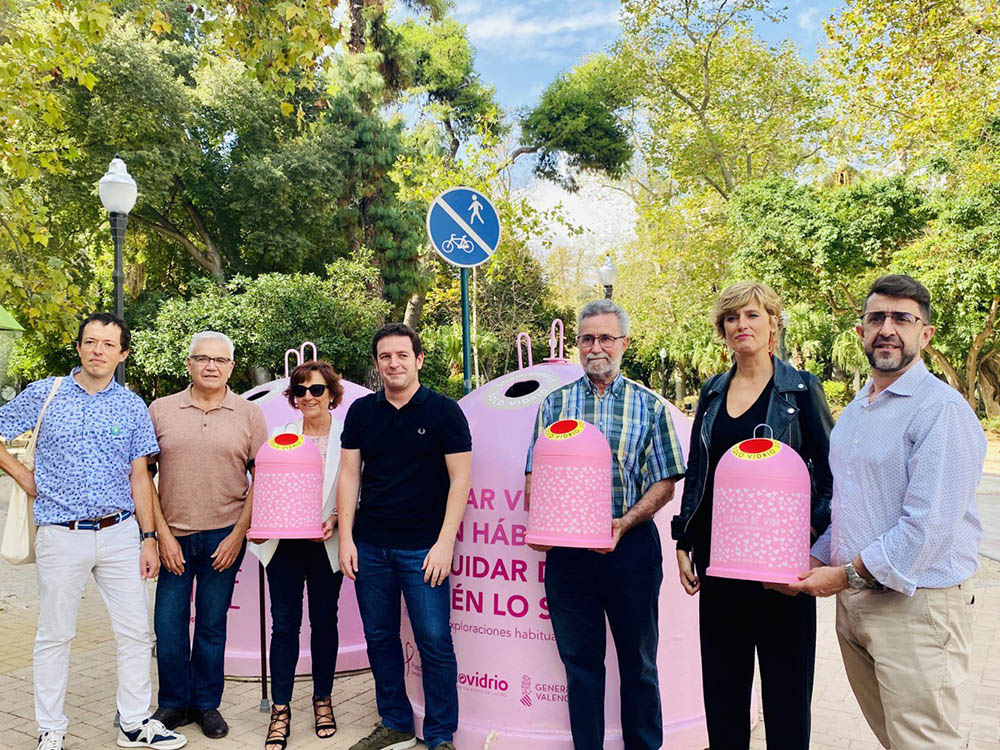 El regidor de Reciclatge i Gestió de Residus, Ignasi Garcia, i el representant de Ecovidrio, Manuel Sala, han presentat aquest matí el llançament de la campanya a Castelló, acompanyats aquest matí per la regidora de Feminismes i LGTBI, Verònica Ruiz; el regidor de Participació Ciutadana, Francesc Mezquita; el diputat autonòmic Silverio Tena; el president l'Associació Espanyola Contra el Càncer (AECC) de Castelló, Carlos Ulldemolins; i la coordinadora de l'entitat, Salomé Esteller.