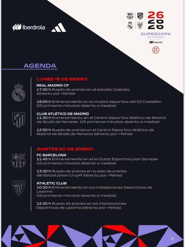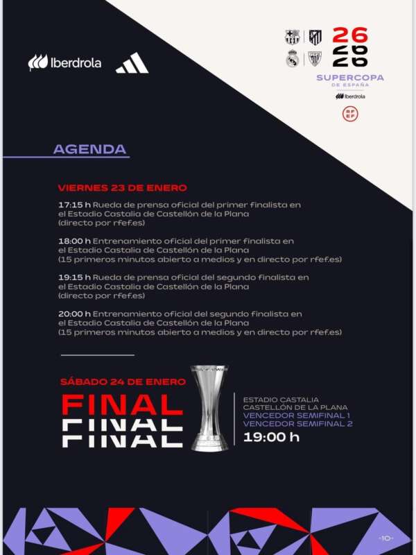 Por su parte, el presidente de la RFEF, Rafael Louzán, ha agradecido la disponibilidad del CD Castellón y ha puesto en valor el crecimiento del fútbol femenino. “En esta Supercopa participan los mismos cuatro contendientes que acaban de jugar en Arabia, pero en este caso en el ámbito femenino”, ha señalado. Louzán ha reconocido que “tenemos que seguir mejorando, porque el fútbol masculino es otra realidad, pero la del femenino es imparable, aunque necesita la ayuda de todos”, y ha destacado la implicación de la Generalitat Valenciana y del Ayuntamiento de Castelló.