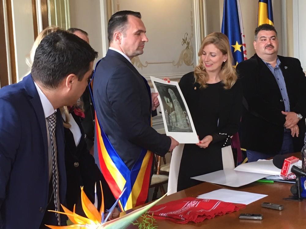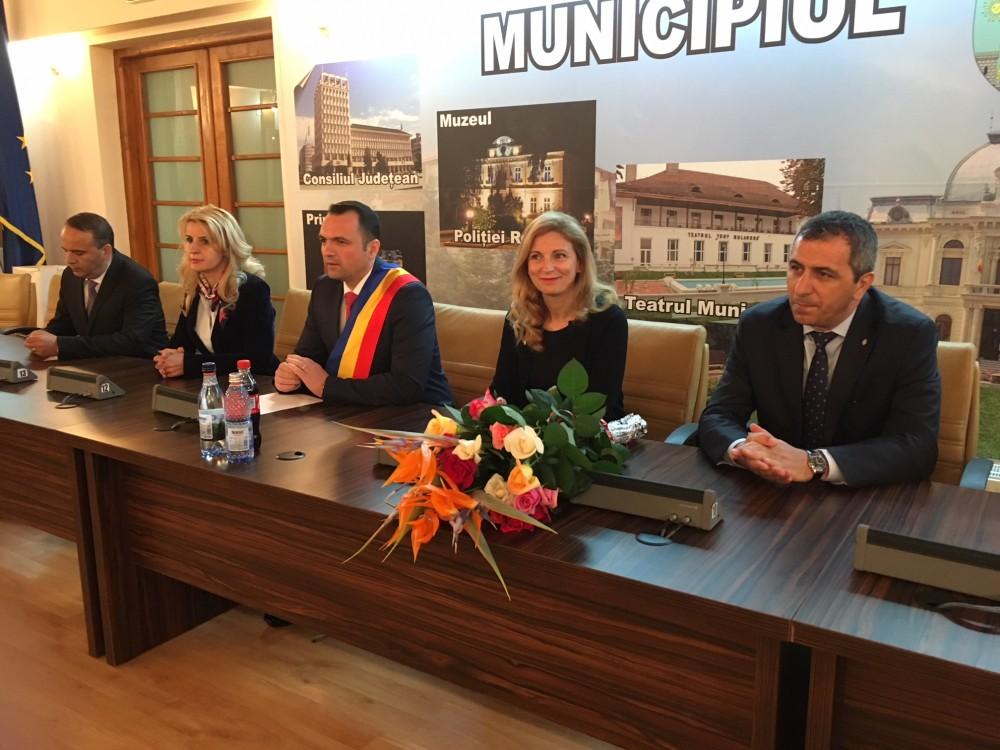 La alcaldesa de Castellón, Amparo Marco, y su homólogo de Târgovişte, Cristian Stan, han mantenido una reunión en el Ayuntamiento de la localidad rumana en la primera jornada de la agenda castellonense en la ciudad hermana. El encuentro, en el que ha participado la práctica totalidad del Gobierno municipal, se ha celebrado en la Salón Florentino del Ayuntamiento y ha servido para intercambiar buenas prácticas en la gestión de proyectos de desarrollo local y experiencias administrativas que han tenido éxito en los respectivos municipios.