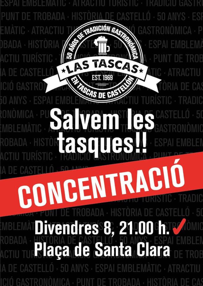Bajo el lema ‘Salvem les tasques’, los hosteleros de las tascas de Castelló han convocado una concentración para el próximo viernes, 8 de noviembre, a las 21 horas en la plaza Santa Clara, con el objetivo de defender esta tradición de la capital de la Plana.