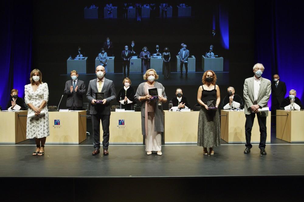 En el acto también se ha entregado la Medalla de Oro de la Universitat Jaume I a los colectivos sanitario y sociosanitario, educativo y científico ante "una respuesta profesional, cargada de empatía, esfuerzo compartido, solidaridad y resiliencia durante la pandemia de la Covid-19 que nunca nos cansaremos de agradecer", ha señalado la rectora Eva Alcón.