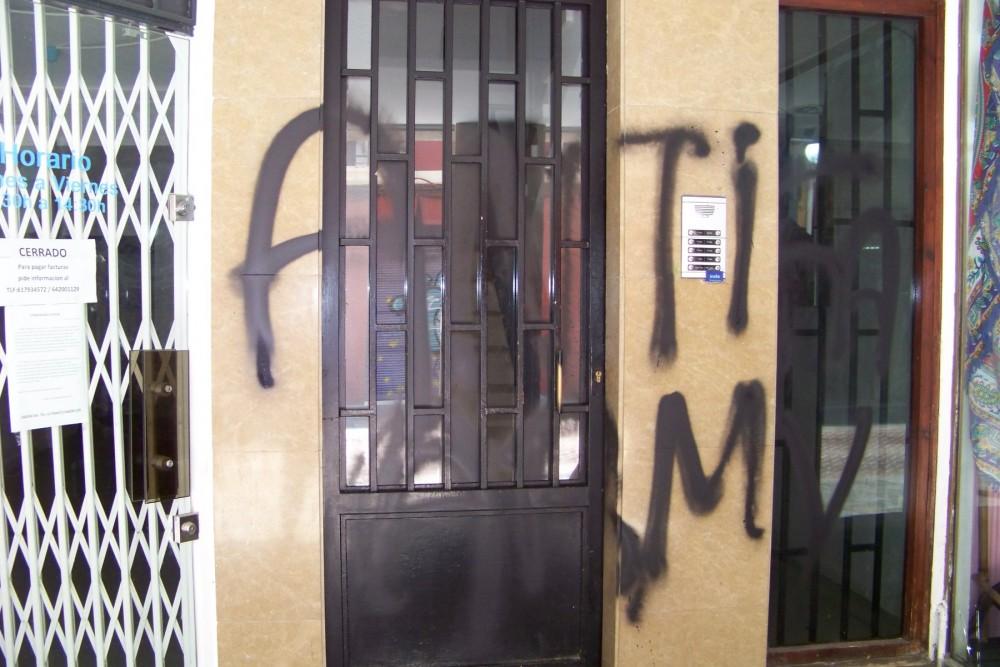 La fachada de la sede castellonense, situada en Escultor Viciano 20, ha sido el objetivo de los actos vandálicos