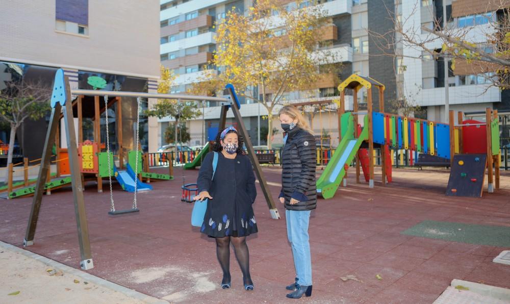 Els treballs han dividit l'espai en dues parts d'igual grandària, deixant la de jocs en la part més pròxima a l'avinguda i l'altra com a àrea de descans. En la zona de jocs, s'ha cobert el sòl amb paviment de cautxú continu (demolint les dues soleres de formigó que hi havia) i s'han instal·lat alguns dels jocs ja existents una vegada han sigut reparats i pintats, a més d'un nou joc múltiple d'integració. També s'han habilitat dues rampes per a fer accessible la zona de joc. L'execució de les obres ha tingut una duració de quatre setmanes i el pressupost de les mateixes ha superat els 48.000 euros.