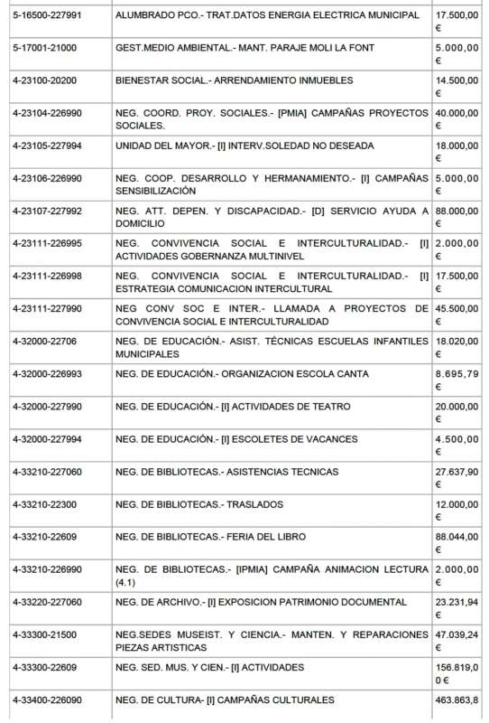 También se destinan fondos a nuevas campañas de cultura, infraestructuras hídricas, como se había solicitado.