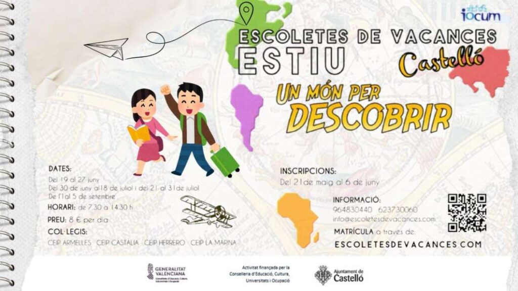 El programa ‘Un món per descobrir’, permitirá a los niños conocer las culturas de los cinco continentes y realizar excursiones al Fadrí, al Planetario o al Museo Etnológico, entre otros lugares, para descubrir el patrimonio de Castellón. La Escoleta busca facilitar la conciliación familiar y ofrecer un recurso esencial para el desarrollo saludable de las niñas y niños a través de actividades lúdicas, deportivas, artísticas y culturales.