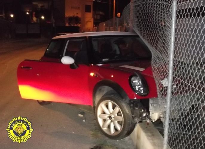 La Policía Local de Castellón intervino en la madrugada del viernes, sobre las 03:30, en el camino viejo del Serradal, en un accidente de tráfico en el que estuvo implicado un solo turismo que, tras salirse de la vía, colisionó de forma violenta contra el muro de una parcela ubicada en dicho camino de la Marjalería.