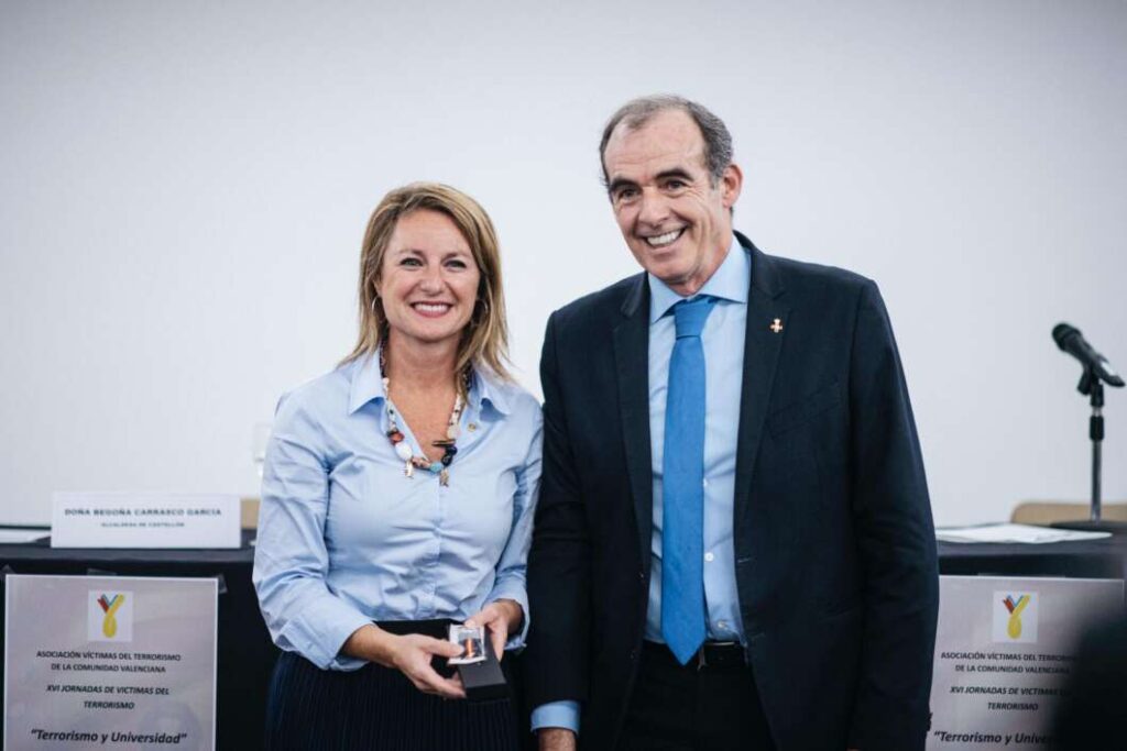 La alcaldesa ha trasladado el nombre del Ayuntamiento de Castellón, "el apoyo institucional a las víctimas, a las familias y afectados por el terrorismo. Porque las instituciones tenemos la responsabilidad de hacer de correa de transmisión de mensajes y valores como los que en la tarde de hoy están presentes al resto de la sociedad".