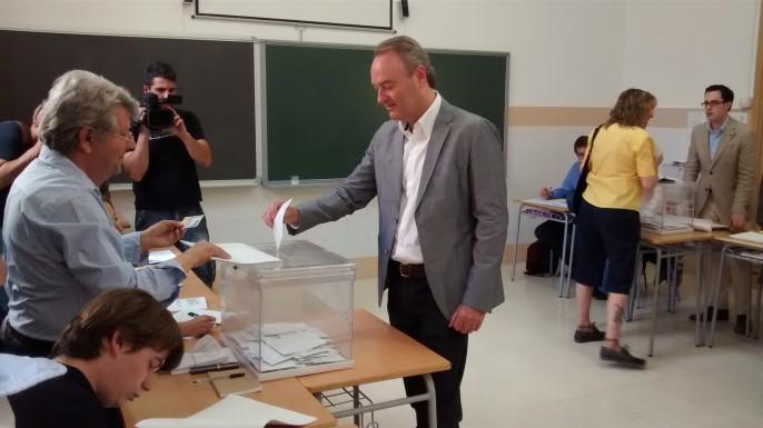 Alberto Fabra, presidente del Partido Popular de la Comunitat Valenciana y también President de la Generalitat, ejerció su derecho al voto pasadas las 11.30 de la mañana en una de las mesas electorales ubicadas en el Instituto Ribalta de Castellón. Fabra acudió acompañado de sus padres. Tras saludar a interventores y ciudadanos que esperan para poder votos, su puso en la cola donde en esos momentos una funcionaria de Correos hacía entrega de cinco sobre con los votos emitidos por correo correspondientes a esa mesa electoral.