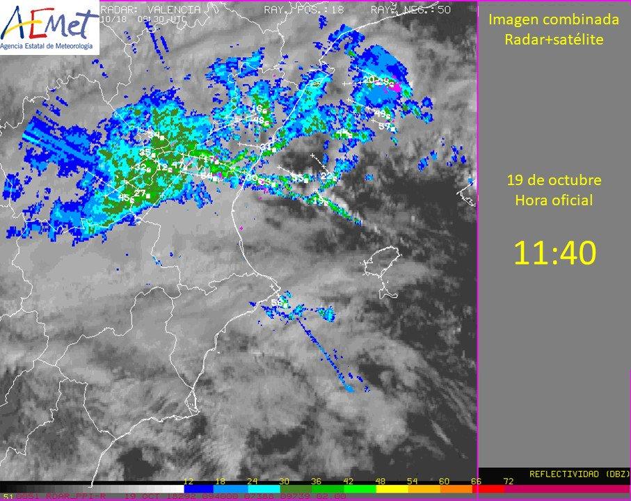 Varios rayos han descargado esta mañana sobre la provincia de Valencia. Al filo de las 11.40 según el radar de Aemet, se están acercando a las comarcas del sur de Castellón, con alguna descarga ya entre Almenara y El Toro.