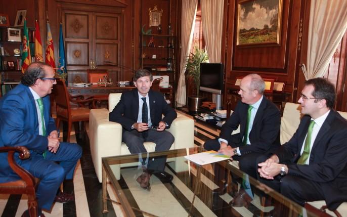 El alcalde de Castellón, Alfonso Bataller, se ha reunido hoy con representantes de la empresa Iberdrola para tratar temas relativos a la electromovilidad. En el encuentro estuvieron presentes Carlos Bergera, responsable de 'Movilidad Verde Iberdrola', Joaquín M. Longares Penadés, delegado comercial Comunitat Valenciana y Murcia, y Juan Manuel Martínez Oyarzábal, gestor comercial de Iberdrola en Castellón. También estuvo presente el concejal de Hacienda, José Masip.