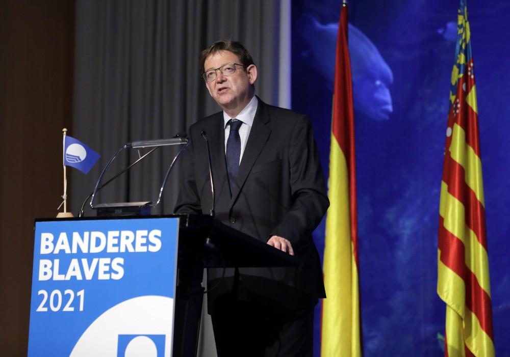 El president ha participado en l'Oceanogràfic en el acto de entrega de las banderas azules de la Comunitat 2021, donde ha puesto de manifiesto que la valenciana vuelve a ser la autonomía española con el mayor número de playas galardonadas con el distintivo 'bandera azul' en 2021, al recibir 153 enseñas (137 para playas y 16 para puertos deportivos) de las que otorga la Asociación de Educación Ambiental y del Consumidor - Fundación para la Educación Ambiental (Adeac-FEE). En la provincia de Castellón son un total de 32 playas las que han obtenido el preciado reconocimiento.