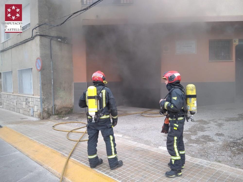 Efectivos de bomberos del Consorcio Provincial de Castellón del parque Baix Maestrat han trabajado en el incendio de un parking en Benicarló.