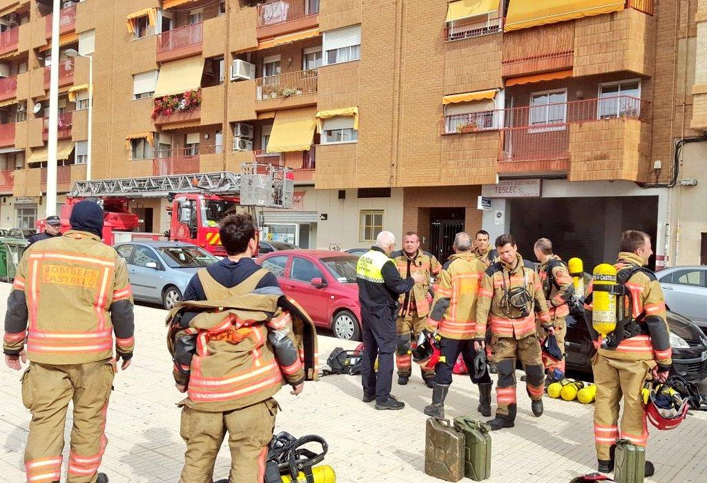 Los bomberos de la ciudad de Castellón y efectivos de la Policía Local han intervenido esta mañana para apagar un incendio en el aparcamiento de la calle Cronista Muntaner.