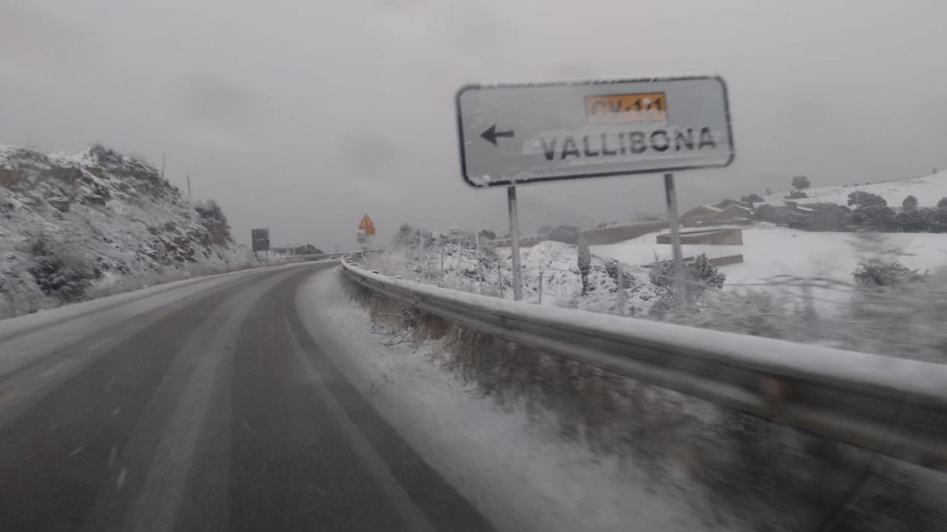 La intensa nevada que está cayendo desde primera hora de la mañana de este domingo en el interior de la provincia de Castellón por la llegada de la borrasca Gloria ha obligado a cerrar al tráfico 3 carreteras,  13 carreteras con uso necesario de cadenas, 3 carreteras con incidencias y 4 carreteras con posible evolución negativa, según han informado desde la Generalitat Valenciana. Las carreteras cortadas son la CV-111 en el término de Vallibona, CV-121 en Olocau del Rey y la CV-126 entre los términos de Vilafranca a Castellfort.